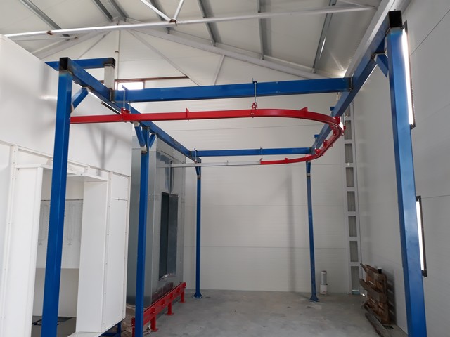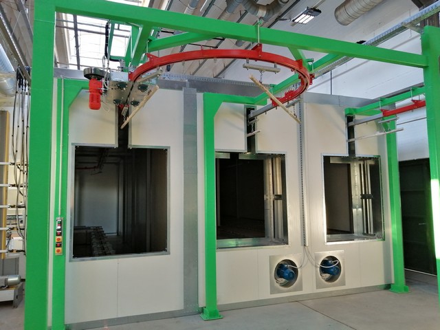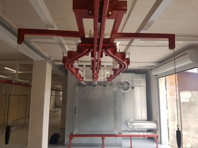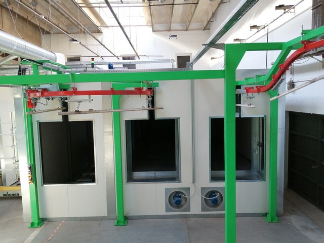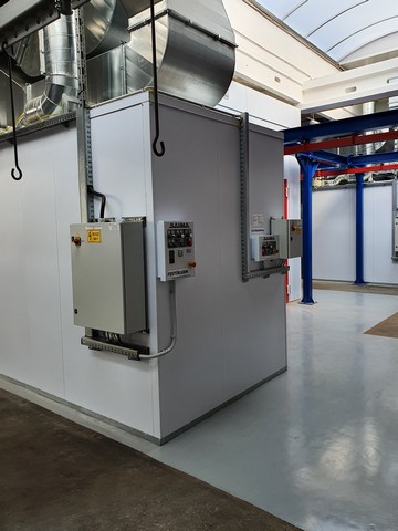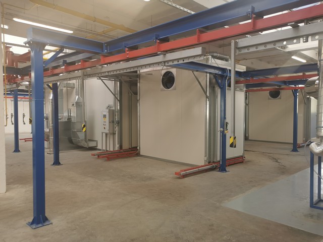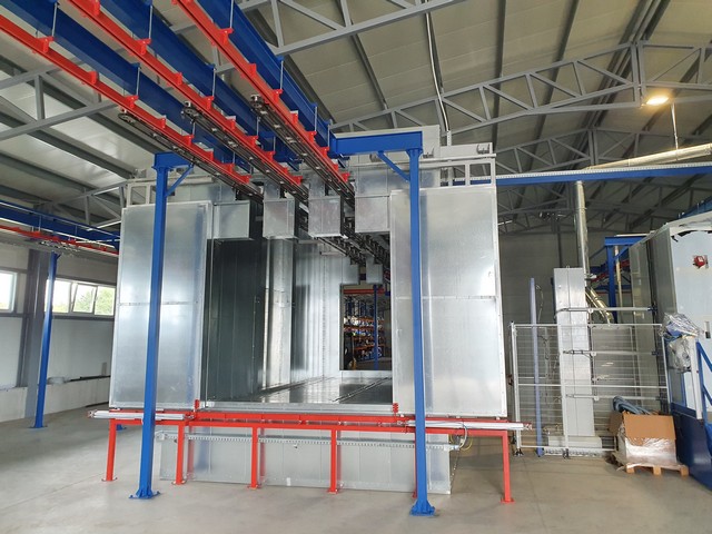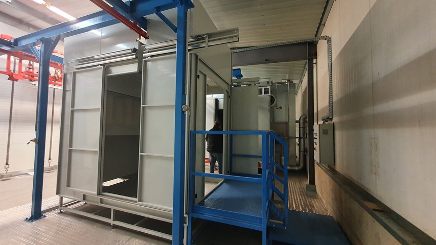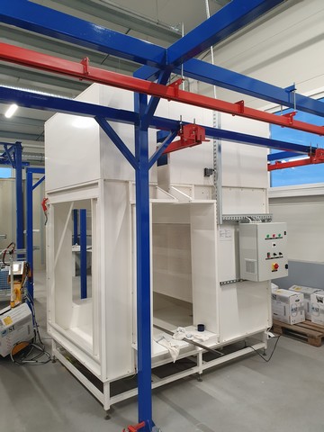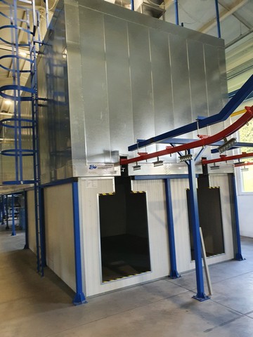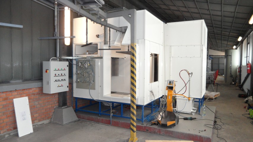 Automata porszóró kabin és tűzoltó rendszer (automata szórástechnikával)