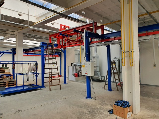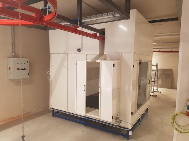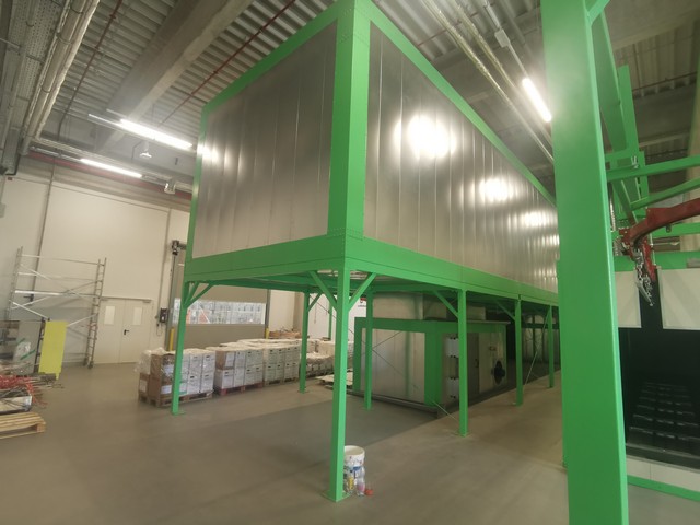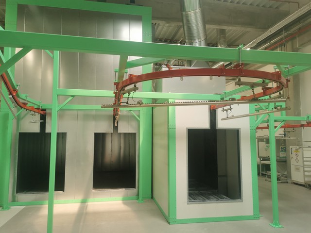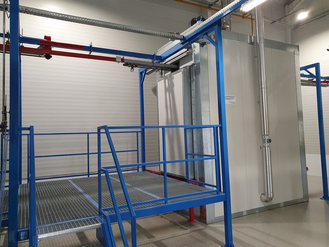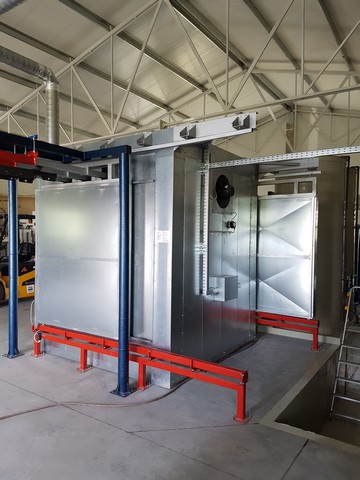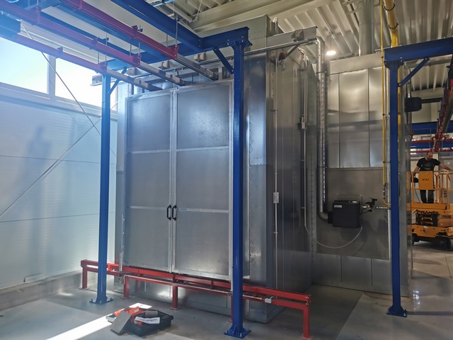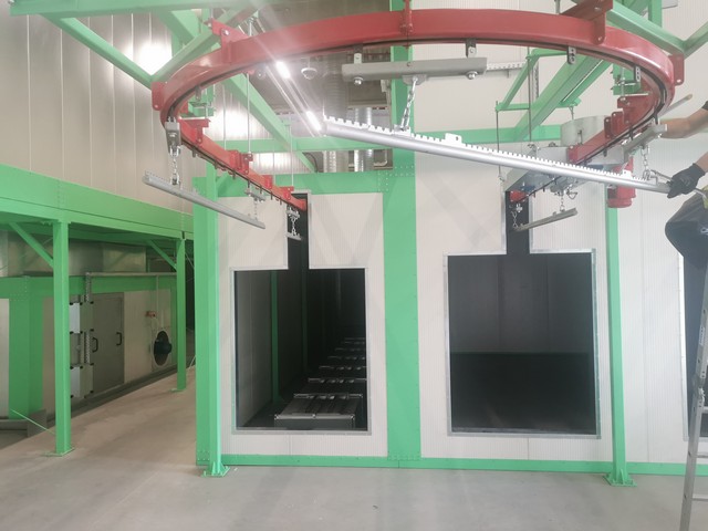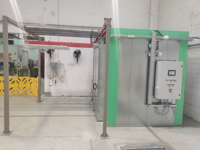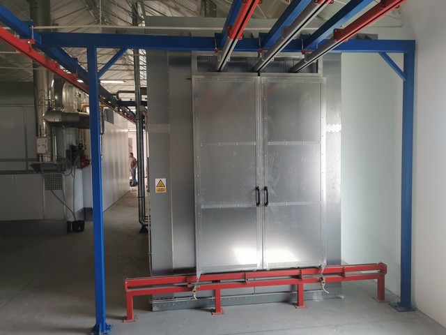 Automata porszóró kabin és tűzoltó rendszer (automata szórástechnikával)