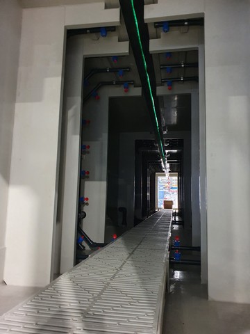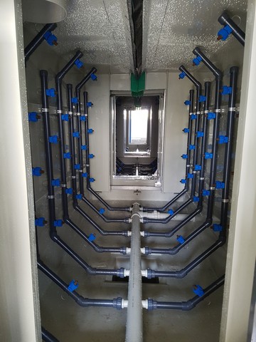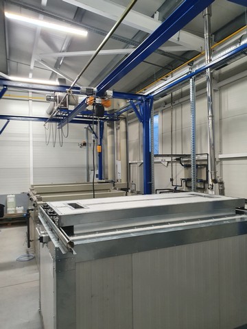 3 db előkezelő kabin (műanyag és Din 1.4301 korrózióálló anyagból) 7 méteres szálanyagok festéséhez