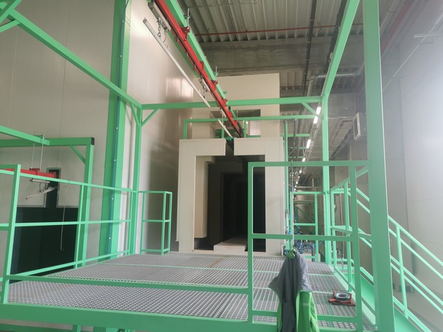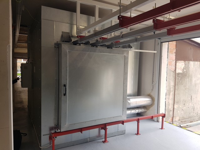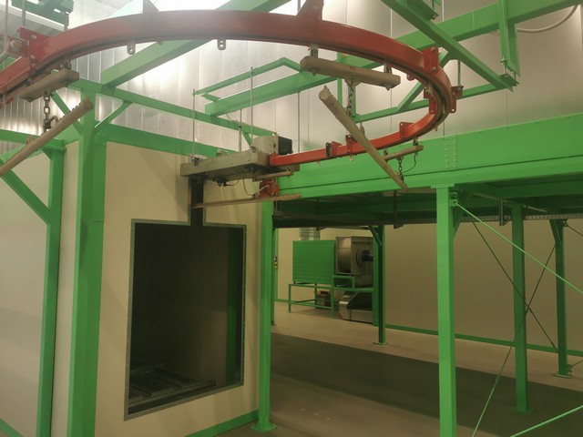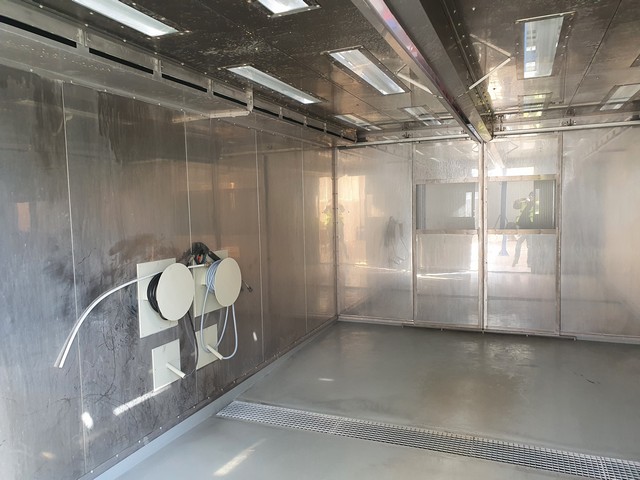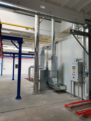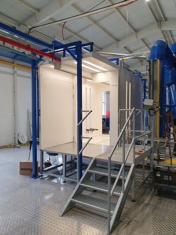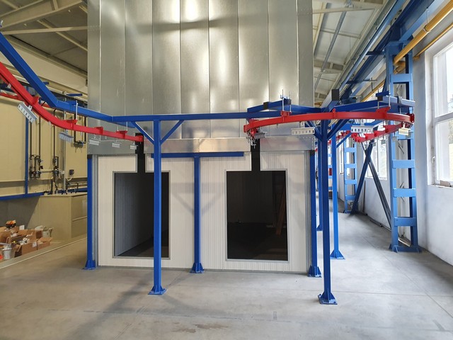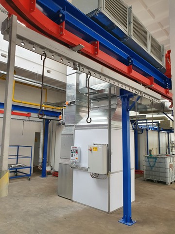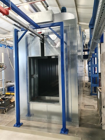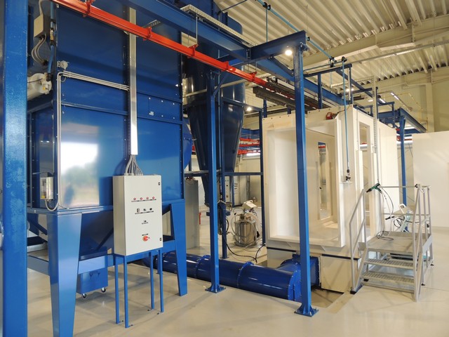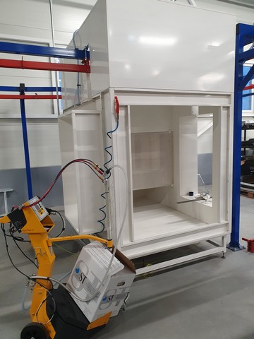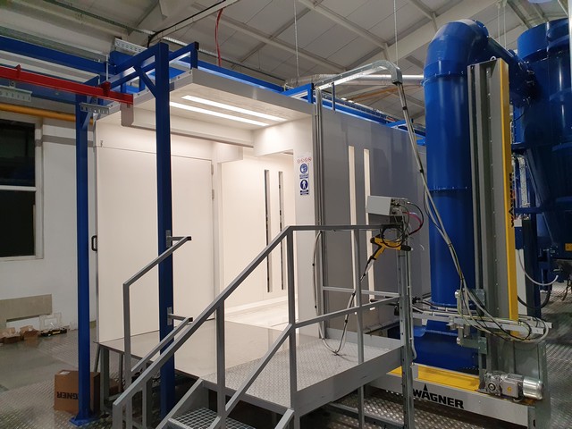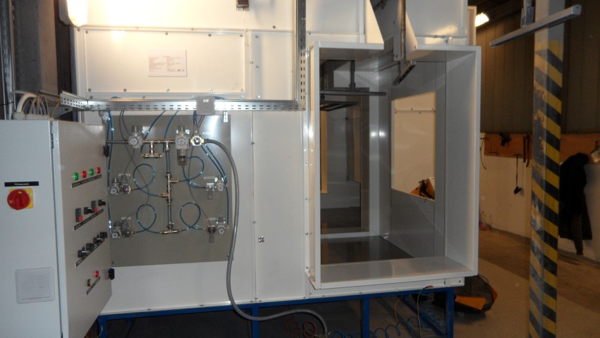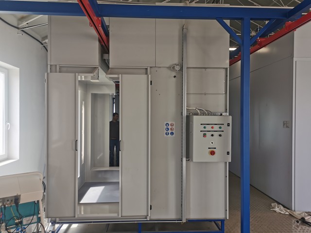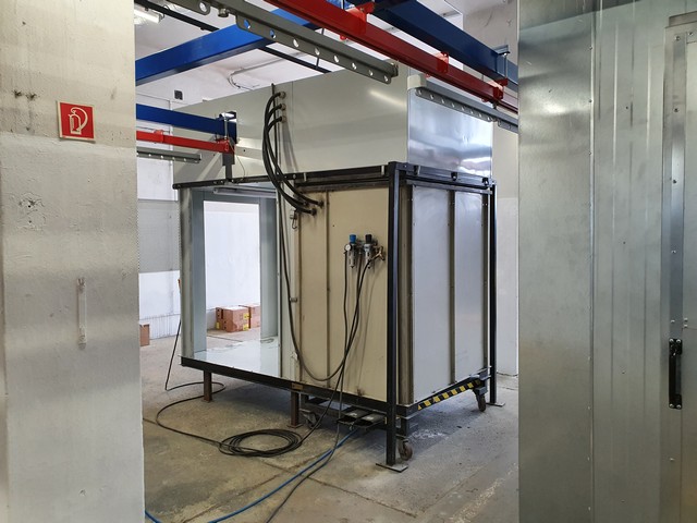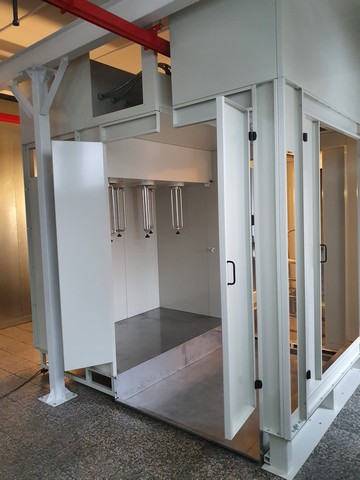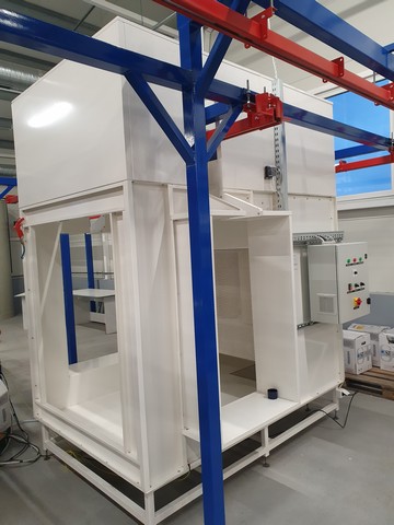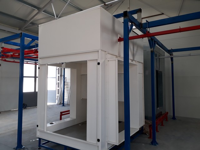 Automata porszóró kabin és tűzoltó rendszer (automata szórástechnikával)