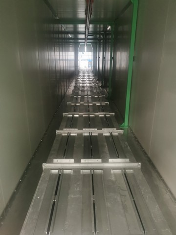 3 db előkezelő kabin (műanyag és Din 1.4301 korrózióálló anyagból) 7 méteres szálanyagok festéséhez